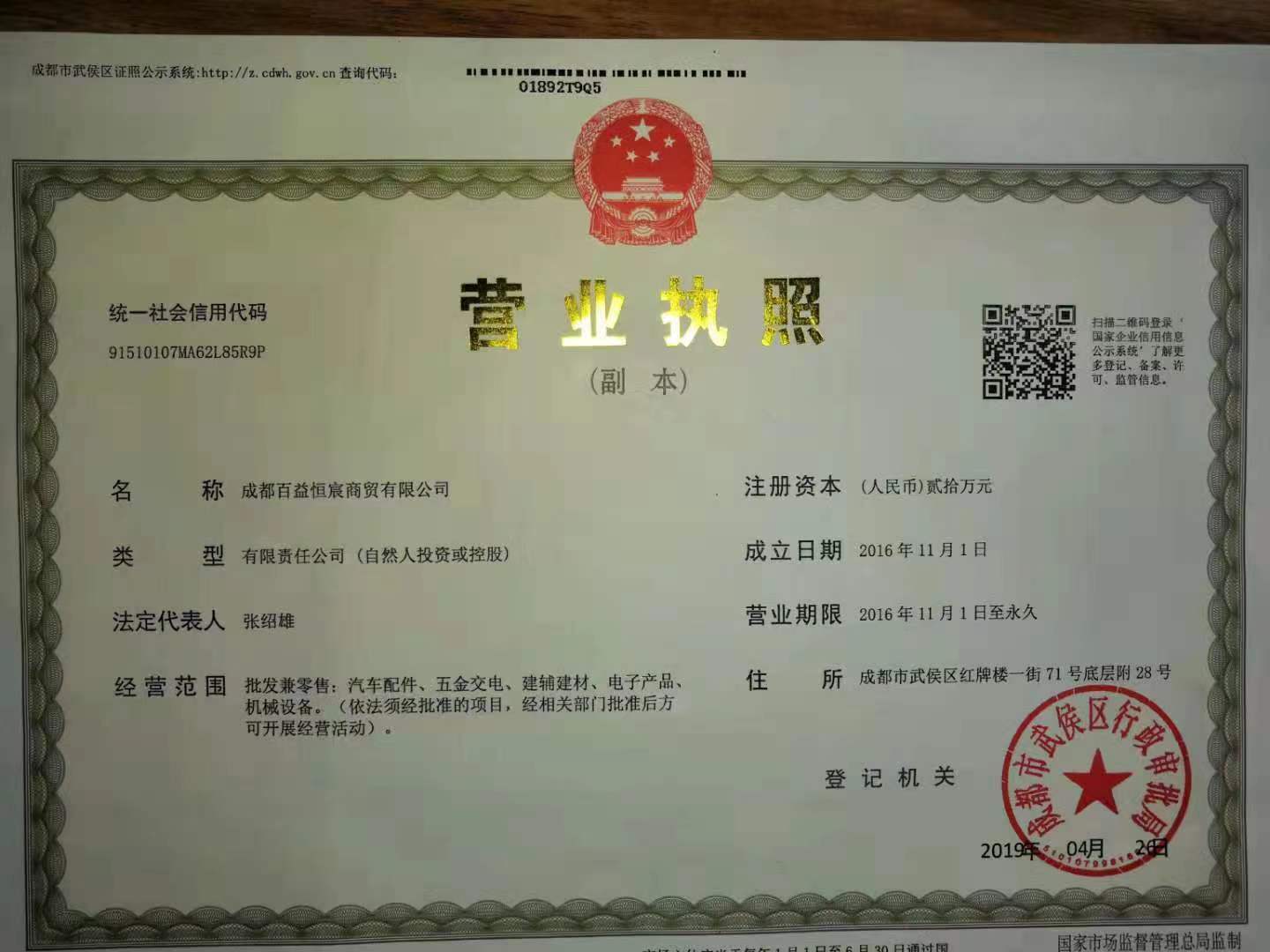 成都百益恒宸商贸有限公司