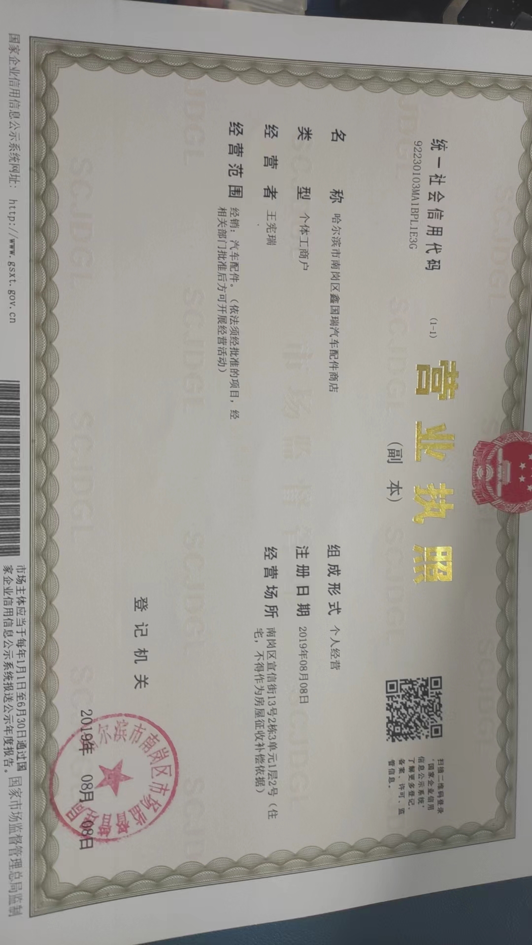 哈尔滨市南岗区鑫国瑞汽车配件商店