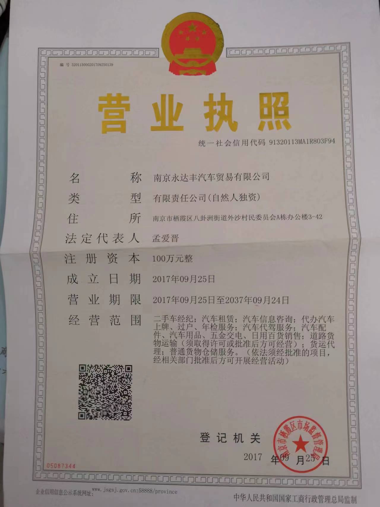 南京永达丰汽车贸易有限公司